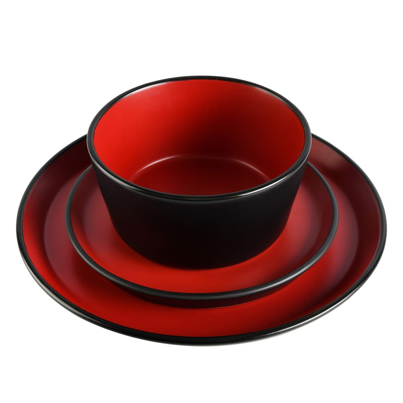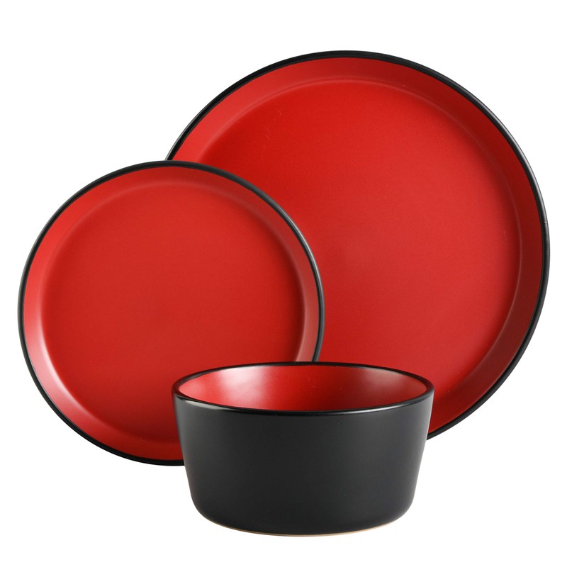 Gibson Soho Lounge Sofia Coupe Stoneware Dinnerware Set, Service for 4 (12pcs), Matte Red