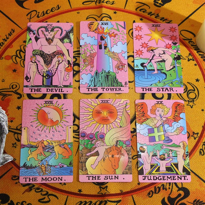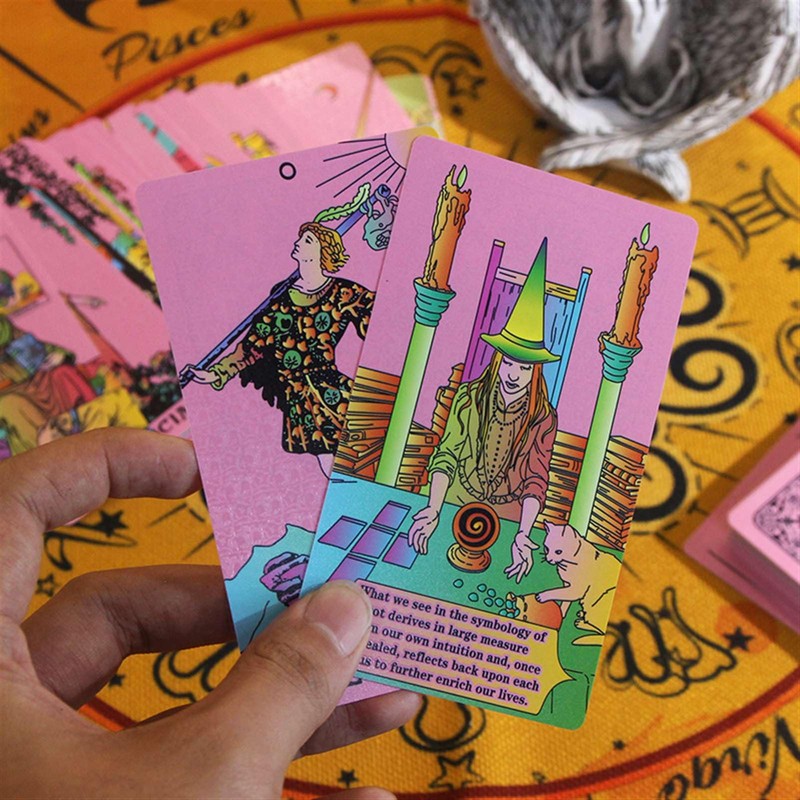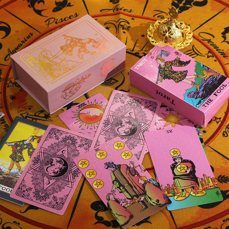 GIBZ Tarot Cards Deck Pink Design Future Telling Game Card Set with Guidebook Holder Box for Beginners