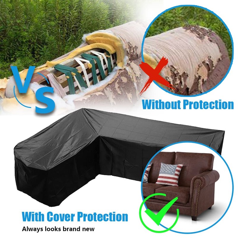 - Our patio sectional sofa cover made of waterproof Oxford fabric. In order to prevent water seepage at the joints, waterproof strip is added on the joint to prevent your outdoor furniture from being exposed to rain. Oxford cloth is also wear-resistant. Anti-UV, protect your sofa from direct sunlight, delay aging, and extend the life of patio sofa.