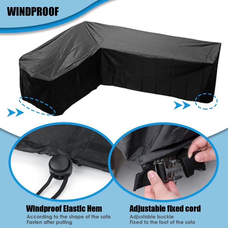 - The bottom of the sofa cover has a smooth drawstring to prevent it from being torn and blown away by the wind . The cover add buckle for fixing the legs of the sofa, double windproof protection.
