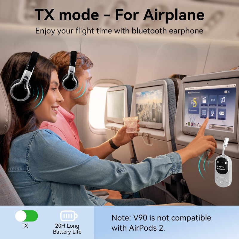 - Dual-Link Bluetooth for Two Headphones: Perfect for sharing audio with a companion, this Bluetooth adapter supports dual Bluetooth connections. You can connect two wireless headphones or AirPods simultaneously, making it ideal for travel, flights, or even gym sessions. The long battery life ensures uninterrupted use for over 20 hours.
