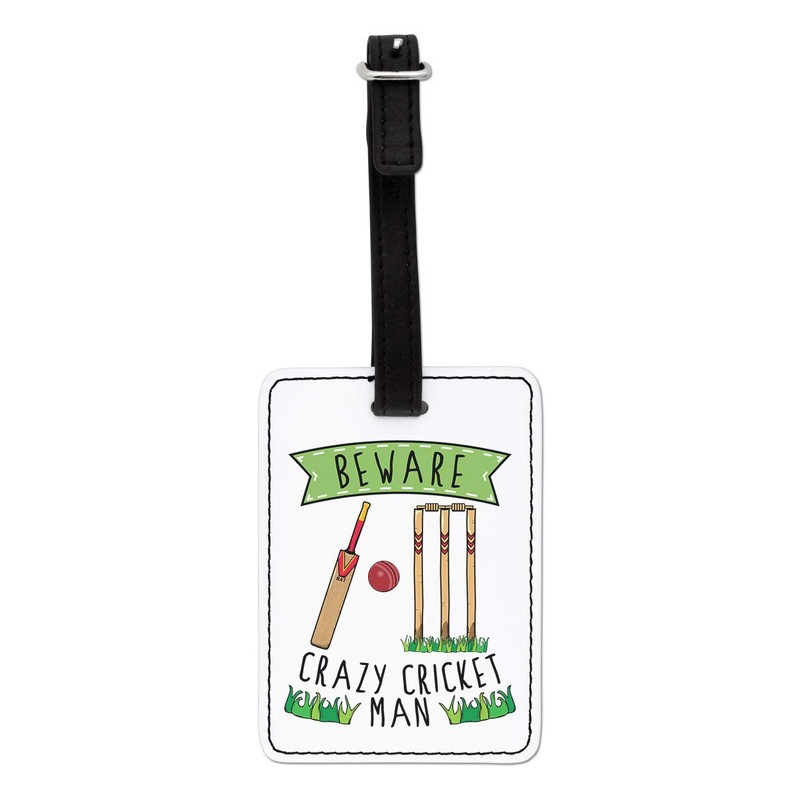 Gift Base Beware Crazy Cricket Man Visual Luggage Tag with Black Strap
