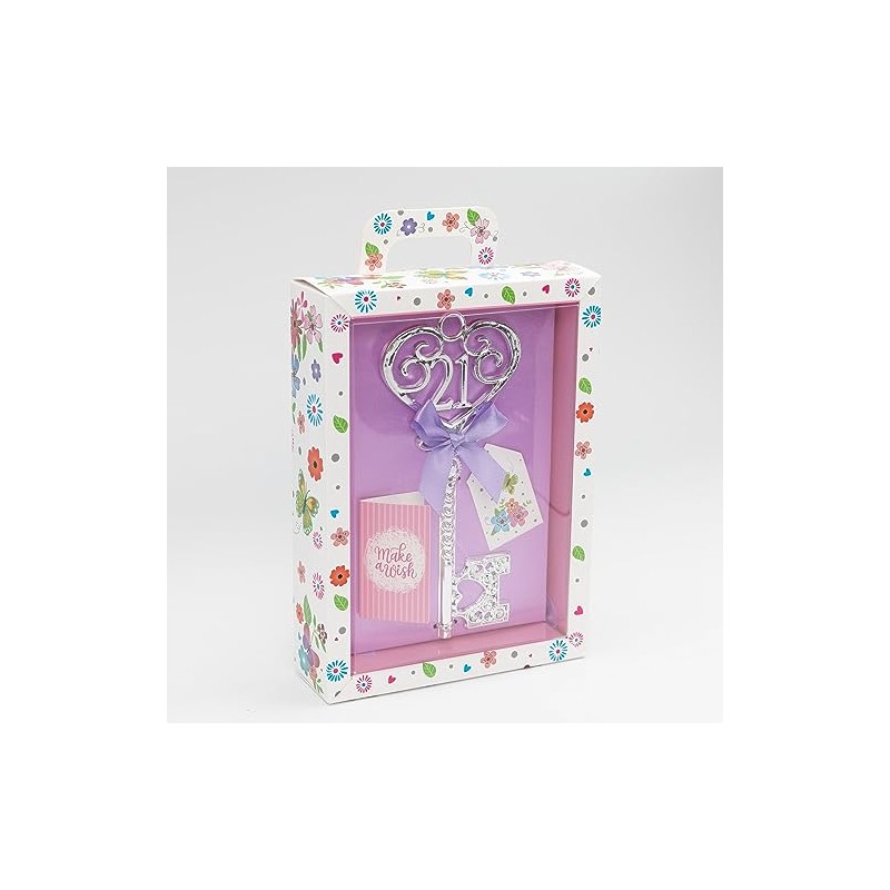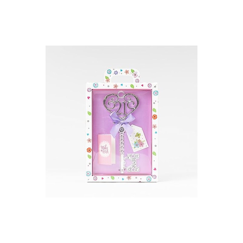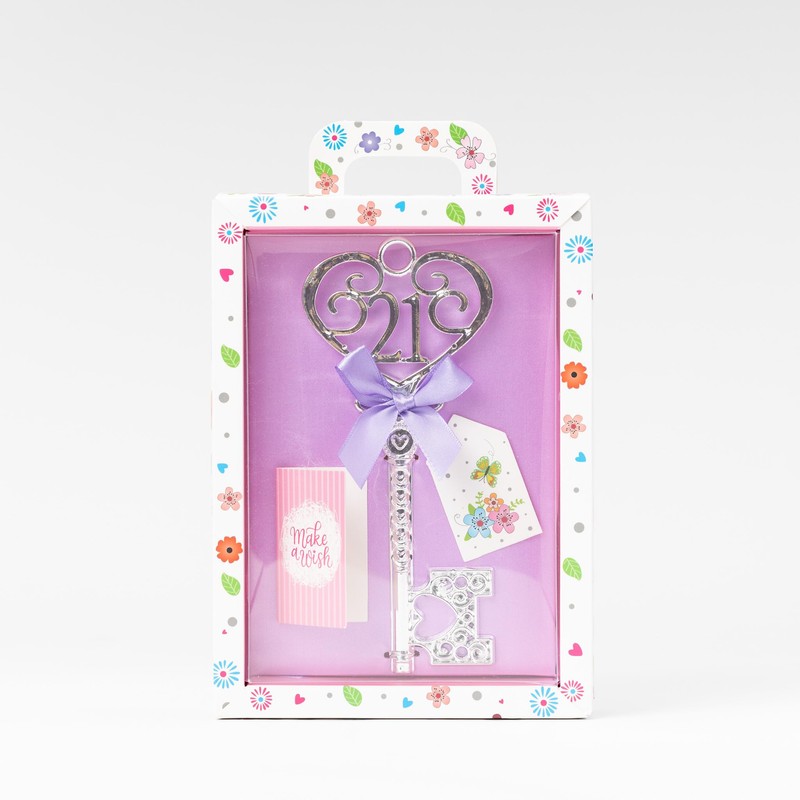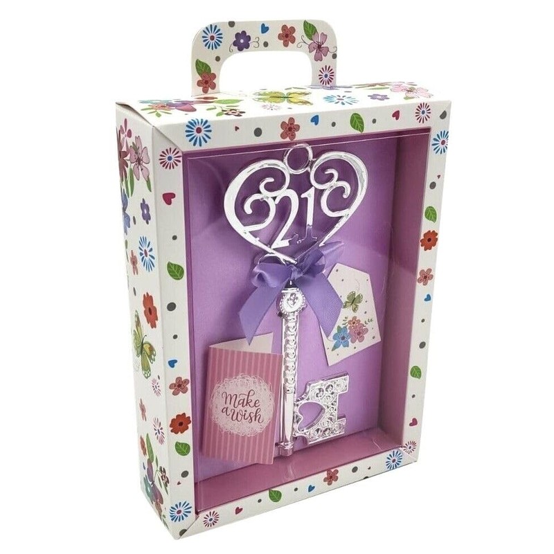 Gift Boxed Silver 18th or 21st Birthday Key Keepsake Blue Pink Lilac Red