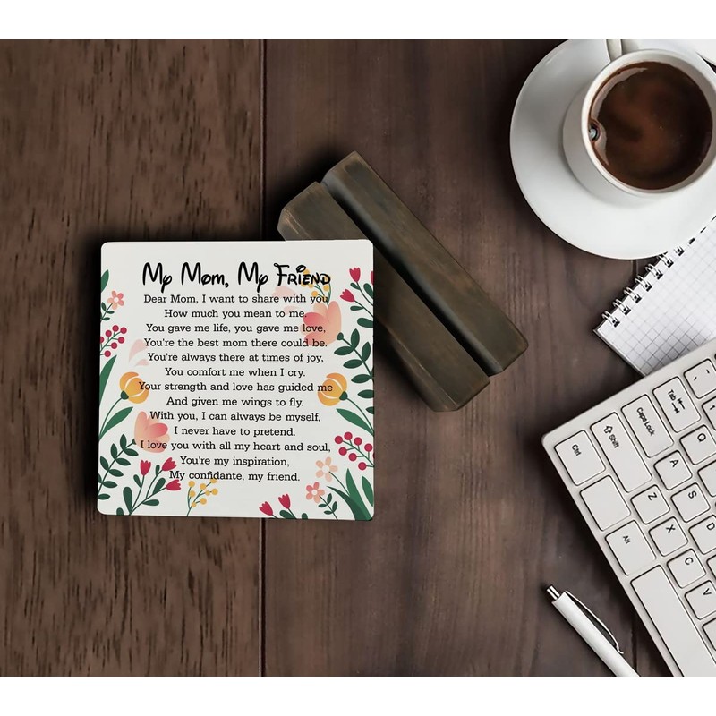 Gift for Mom from Daughter or Son - "My Mom, My Friend" Plaque with Wooden Stand, Meaningful Wood Sign Plaque Gift, Gifts for Mom, Mothers Day, Valentines Day, Mother of the Bride, Mother of the Groom