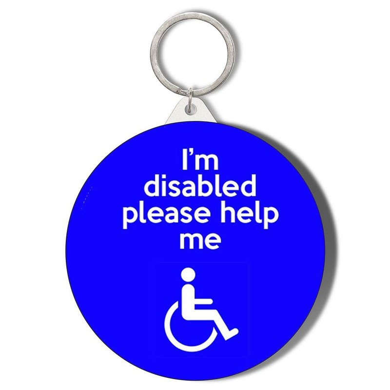 Gift Insanity I'M DISABLED PLEASE HELP ME BLUE WHEELCHAIR SHORT CHAIN KEYRING BOTTLE OPENER