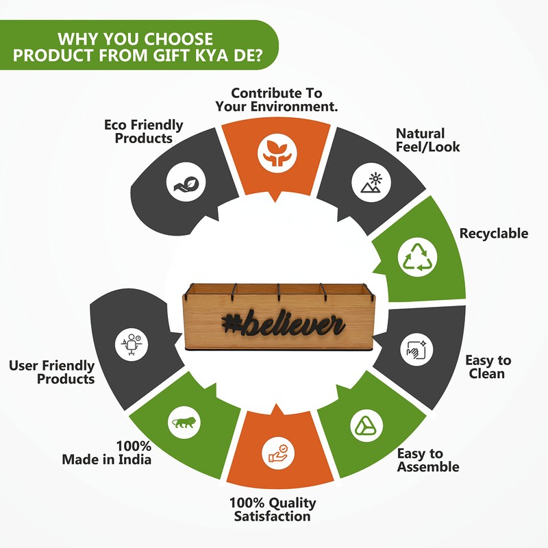 Gift Kya De Multifunctional Office Supplies Desk Organiser Table Stationery Office Organizer, Motivational Gift for any Special Day (Believer (Bamboo))