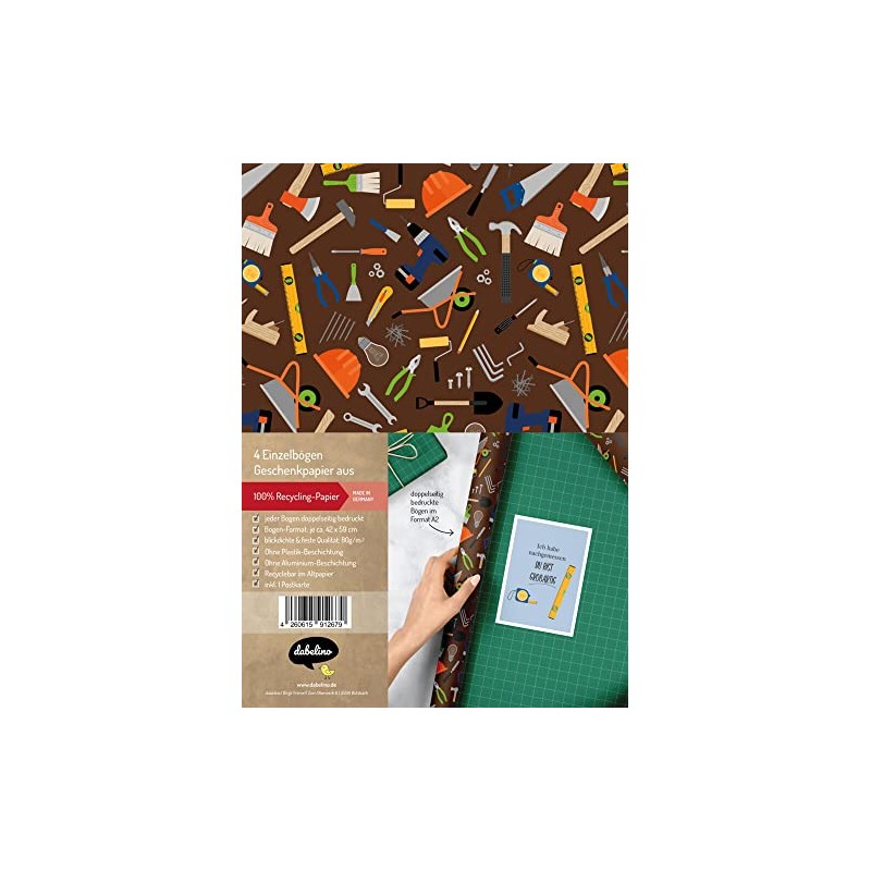 - Gift paper for men, craftsmen and hobbyists: double-sided wrapping paper with tools