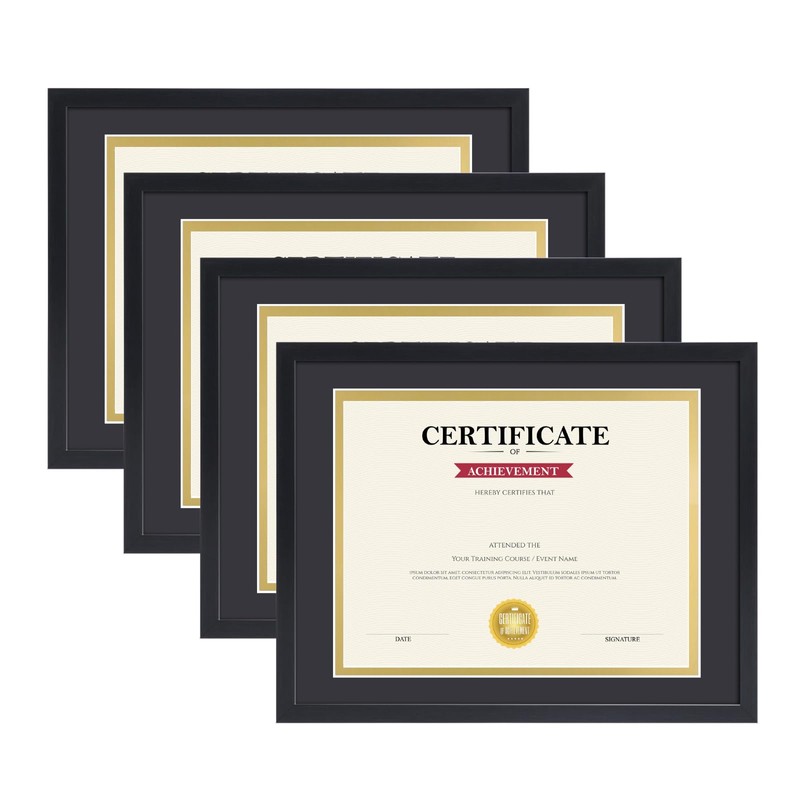 Giftgarden 11x14 Picture Frame Matted for 8.5x11 Certificate Award Degree Document, 4Pack 8.5 x 11 Frames with Mat, Wall Tabletop Display (Black&Gold Double Mats)