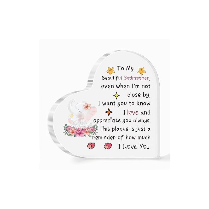 Gifts Acrylic Plaques Mother's Day Present Godmother Appreciate Present Birthday Heart Sign Home Decorations Christmas Souvenirs from Godson Goddaughter to God Mom Love Reminder Keepsake
