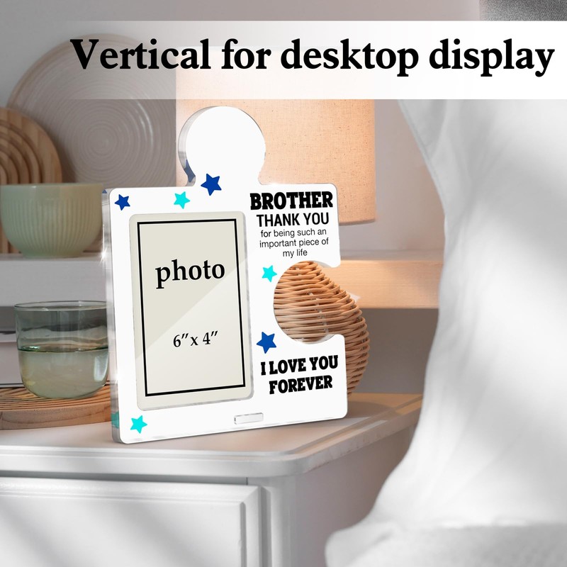 Gifts for Brother from Sister Photo Frame, Brother Birthday Gifts for Men Boys Thanksgiving Christmas Gift Idea, Brother Acrylic Puzzle Piece Tabletop Picture Frames, Vertical Photo 6 x 4 Inches