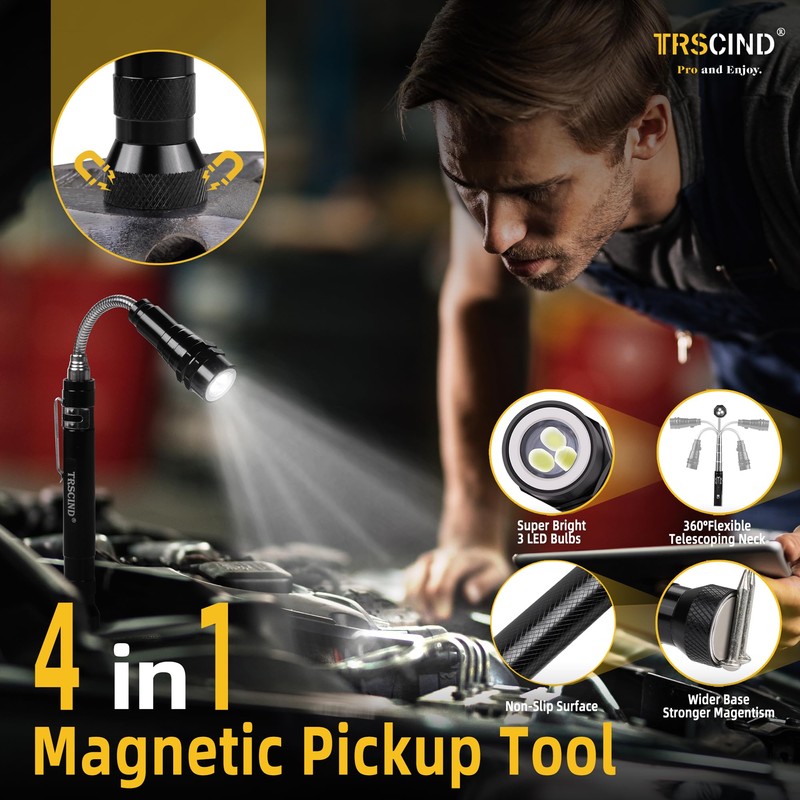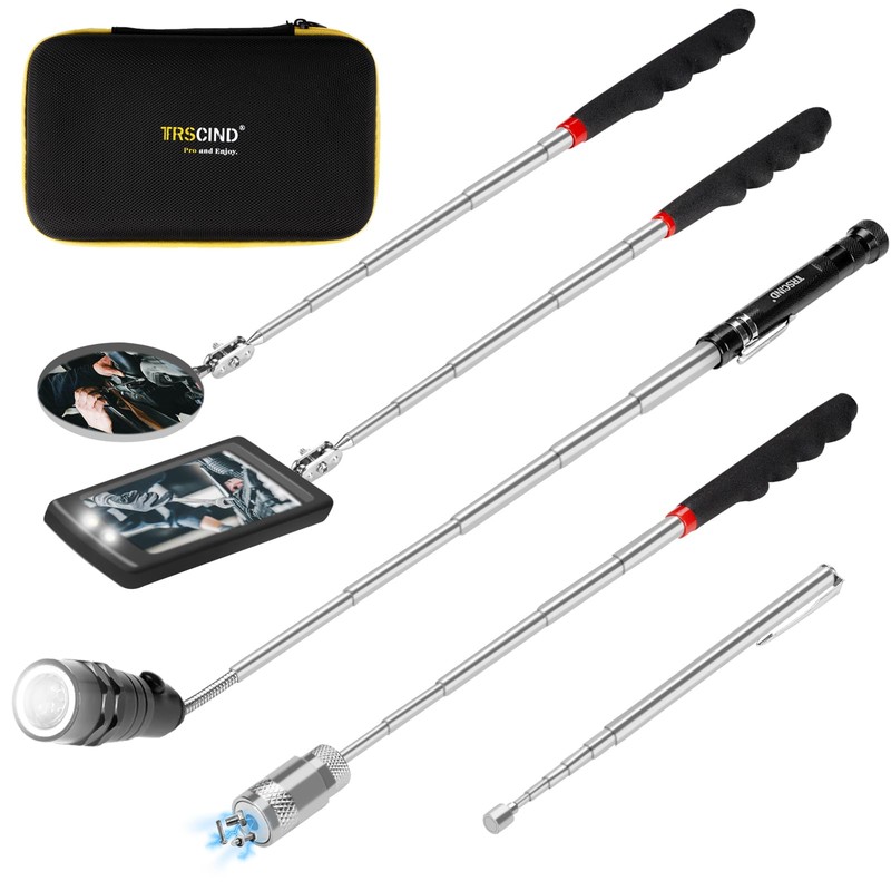 - A Toolbox in Pocket: The Telescopic Magnetic Pickup Tool Kit isn't just a gift; it's the embodiment of convenience. It's like having a fully stocked toolbox in his pocket. There are five different tools in this set, 1 piece 1 lb magnetic pickup rod, 1 piece 15 lb magnetic pickup tool with LED light, 1 round shaped inspection mirror, 1 square shaped inspection mirror with light and 1 telescoping magnetic pickup tool magnetic flashlight.