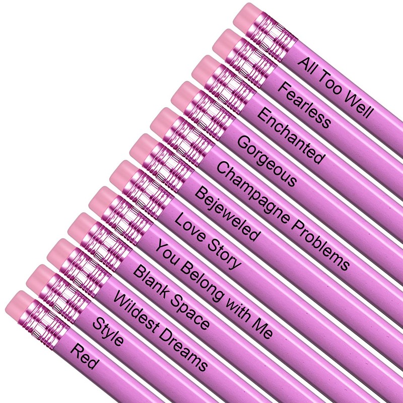 - 🎵 Celebrate Iconic Hits: A set of 12 pink pencils featuring titles of beloved songs.