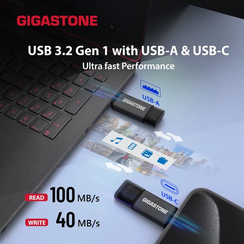 【GIGASTONE】Z40 32GB 2-in-1 Dual OTG Flash Drive USB 3.2 Gen 1, USB-A & USB-C, Reliable Performance, Durable, Data Storage, File Sharing, Backup, Boot Drive, USB2.0/USB3.0/USB3.1 Interface Compatible