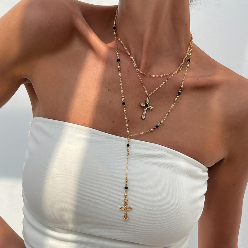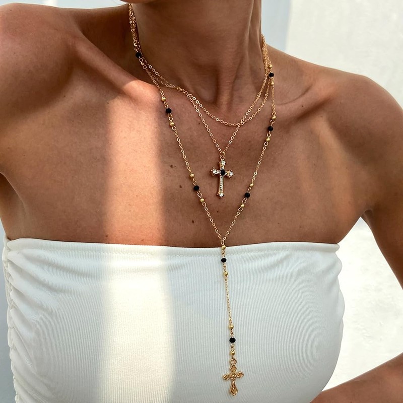 - 1. Our necklaces are unique and outstanding: multi-layered crystal cross necklaces, adjustable golden cross pendant necklaces, and long crystal Y-shaped necklaces. You can wear vintage thick chains, stacked cubic zirconia cross ornaments, or colorful rhinestone exaggerated necklaces, or even exaggerated crystal Y-shaped necklaces to create an "amazing" effect