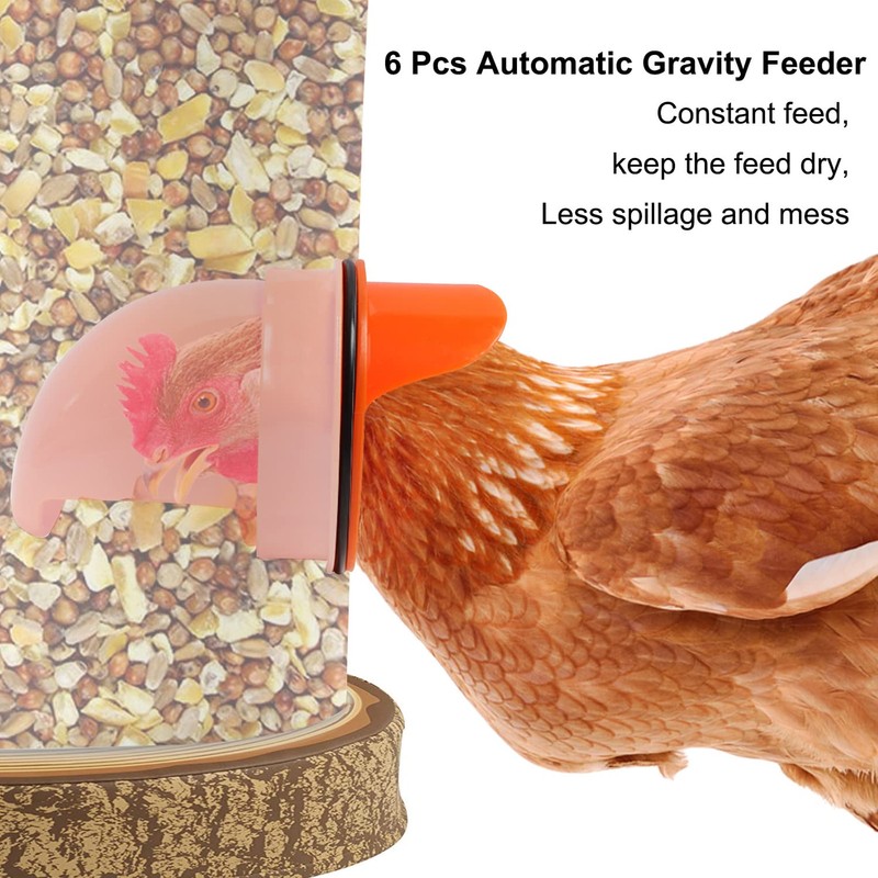- 【Save Worry & Effort】Compare with traditional chicken feeder, this chicken feeder use gravity automatic feeding system, feed will not spill out of container. Suitable for all containers.