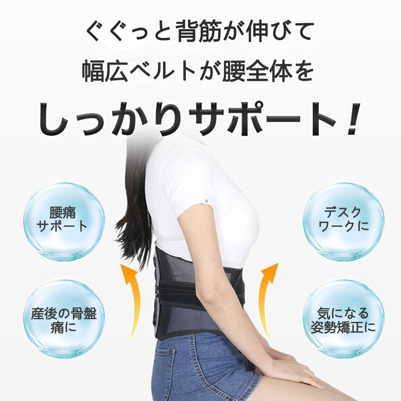- (Lumbar Supporter & Double Compression) This lumbar supporter has been developed to improve the discomfort of your lower back and posture. The lumbar supporter tightens your lower back to naturally stretch your back muscles to maintain a conscientiously correct posture, eliminating the discomfort of your lower back and back caused by distortion. You can always keep your abs light while using it, so it will support your daily movement