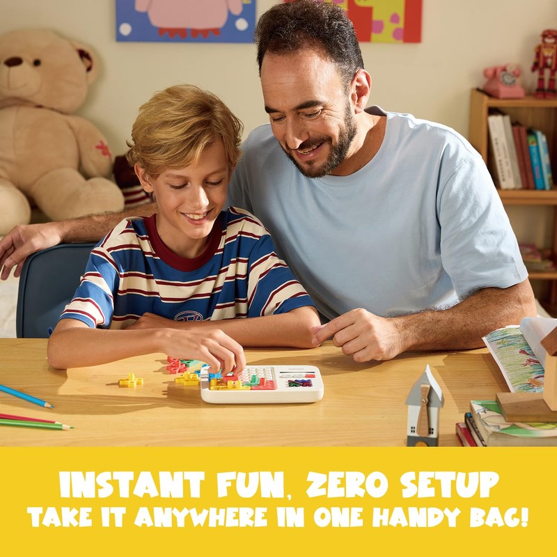 - PORTABLE FOR TRAVEL - Innovative pocket-size handheld game console that is perfect for travel. It's an ideal game for kids who love brain-teasing and puzzles. Keep them entertained on long journeys or during rainy days indoors.