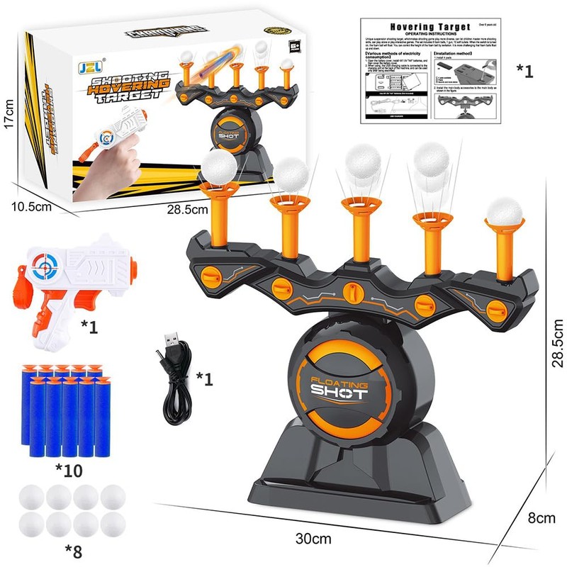 - 【Juego de Diana Flotante】Nuevo diseño, la pequeña bola flota por encima de la diana, el reto es más difícil, se puede ajustar cambiando el viento para ajustar la altura de la bola flotante. Este juego de diana de tiro eléctrica incluye 1 diana de tiro, 1 pistola de juguete, 5 columnas de aire, 8 bolas flotantes, 10 bolas de espuma y 1 cable de alimentación USB. Este juguete de dardos es perfecto para uso en interiores o exteriores, Ayuda a entrenar las habilidades prácticas y la coordinación mano-ojo de los niños.