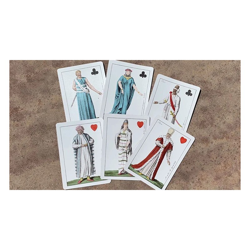 Court card figures depict Arabs in various costumes, which could have been taken from sources of the seven climes (Persia, China/Turkestan, Khwârazm, Slavonia, North Africa, Byzantium, and India), which as well adds another historical value to its rarity.