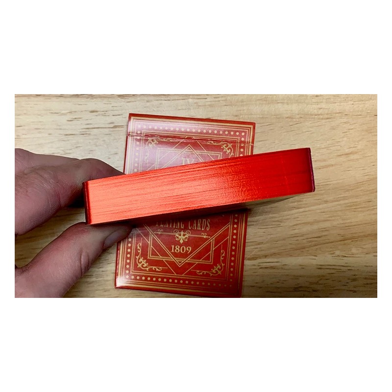The red "Turandot" deck is the fourth in a series of six famous transformation playing card decks we plan to release... This fourth Cotta's almanac playing cards deck was originally published in 1809. There is no known evidence of any deck issued in 1808, and so this red almanac issued in 1809 is considered to be the fourth in a series.