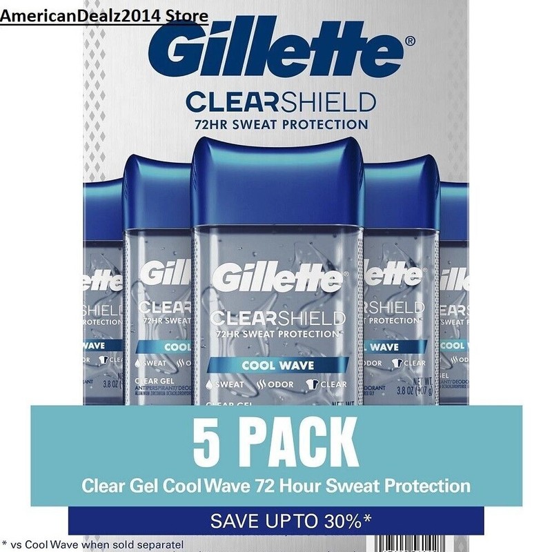 Gillette 5 PACK Gillette Clear Gel Men's Antiperspirant & Deodorant, Cool Wave 3.8 oz.