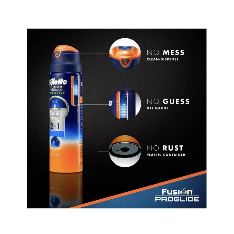 Gillette Fusion Proglide Sensitive, Gel + Skin Care, 6 oz, Alpine Clean (6 Pack).