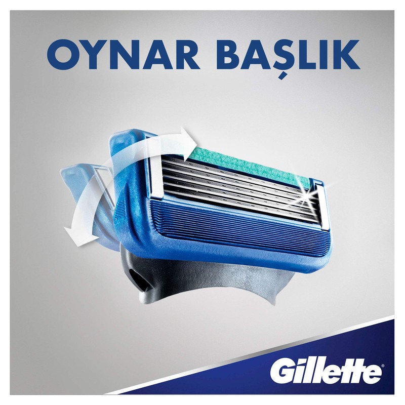 - Yüz kıvrımlarına uyum sağlayan oynar başlığı sayesinde mükemmel Gillette tıraşını sunar