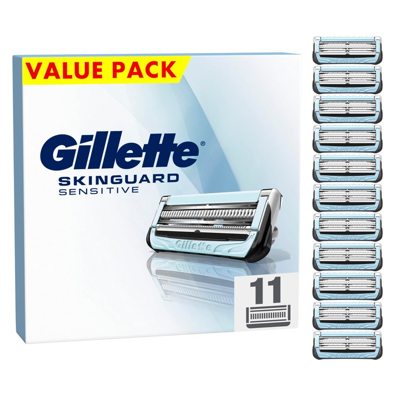 Gillette Gillette SkinGuard Sensitive Rasierklingen, 11 Ersatzklingen für Nassrasierer Herren, verbesserter Gleitstreifen, passend für Fusion-Griffe, Geschenk für Männer