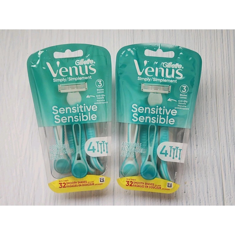 Gillette (Lot of 2) Venus Simply Sensitive Women's 3 Blade Disposable Razor, 4 count