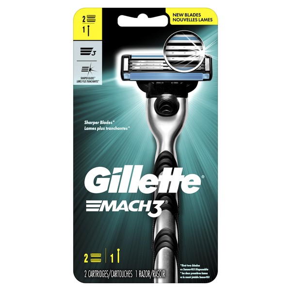 Gillette Mach3 Men's Razor, Handle & 2 Blade Refills (Packaging May Vary)