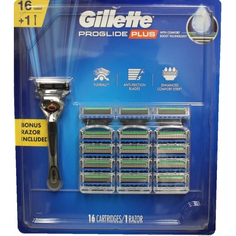 Gillette ProGlide Plus 5-Blade Razor 16 Cartridge & 1 Handle Fits Fusion5 Handle