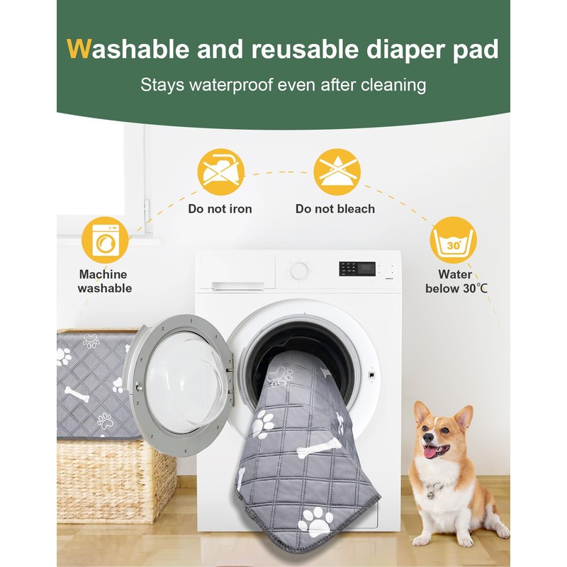 - Washable and reusable: The package includes 2 washable puppy pads, which can be replaced if necessary. The mat is easy to clean - simply put it in the washing machine, allow to dry quickly and reuse without unpleasant odours. High-quality stitching and taped edges ensure that it does not tear easily even with repeated washing.