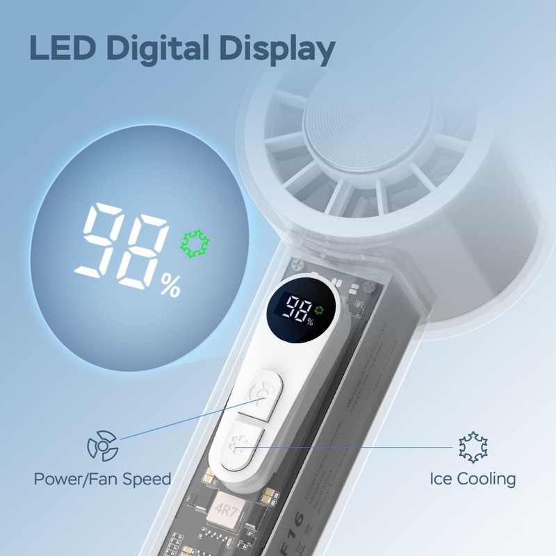 GINEKOO Handheld Turbo Fan with Ice Cooling, Mini Portable Fan, 5000mAh Rechargeable Battery, 6 Speeds Adjustable, Transparent Design for Travel, Outdoor, Office (White)