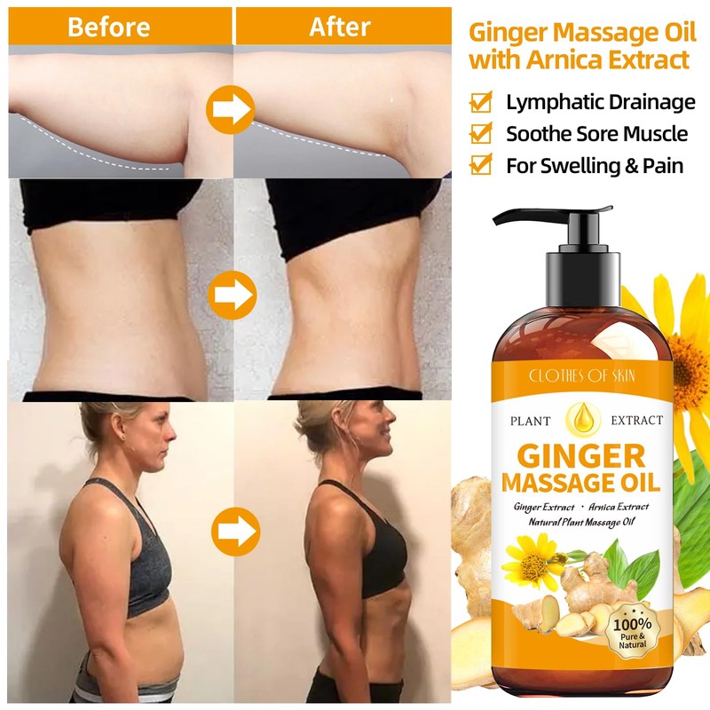 - Ginger Oil for Lymphatic Drainage Massage: Experience the natural efficacy of ginger oil for lymphatic drainage massage.Ginger oil leaves a warming sensation that may promote fitter-looking physiques over time.Our ginger massage oil, rich in organic ginger essential oil, provides a soothing massage experience,help soothe and comfort every day