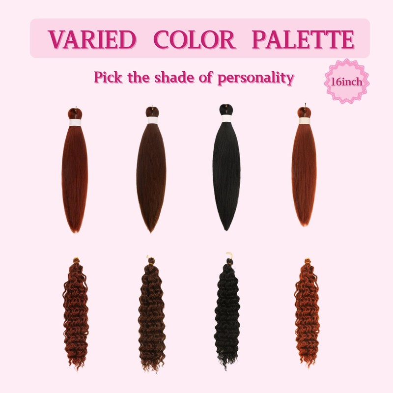 Product Specifications: 4 packs pre stretched braiding hair 16 inches 59g/pack; 1 pack of 16 inch deep wave curls 51g/pack, lightweight and bouncy, basically meeting the needs of full head braiding.