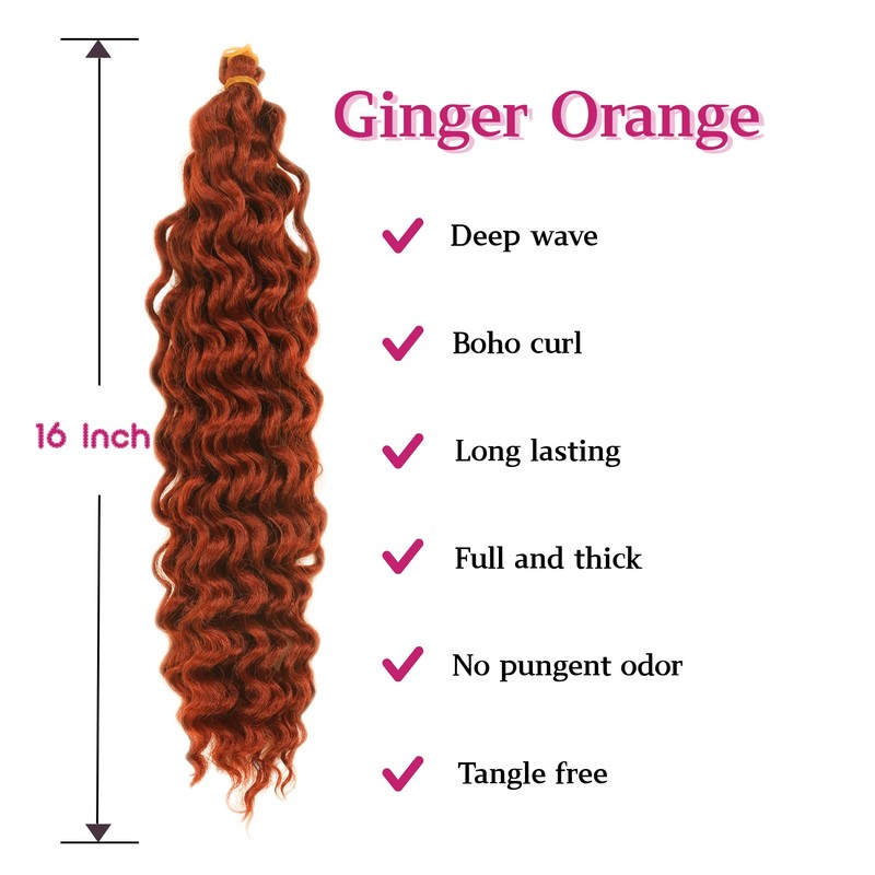 Ginger Orange Braiding Hair Pre Stretched Braiding Hair Extensions Corchet Deep Wave Boho Braids Knotless Ez Braid Non Toxic