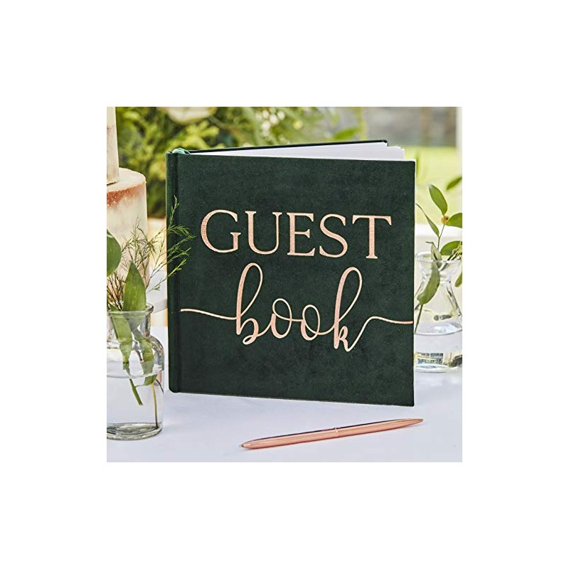 Ginger Ray Botanical Wedding Green Velvet Bronze Foiled Guest Book, paper