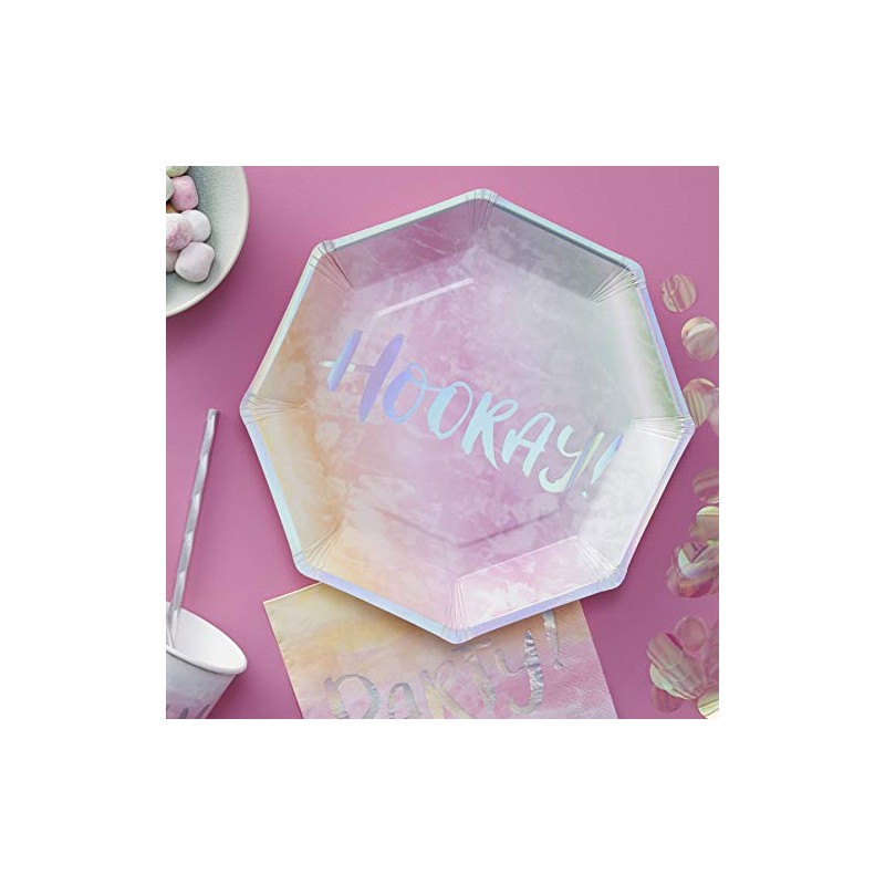 Ginger Ray Iridescent Hooray Rainbow Paper Party Plates - Iridescent Party