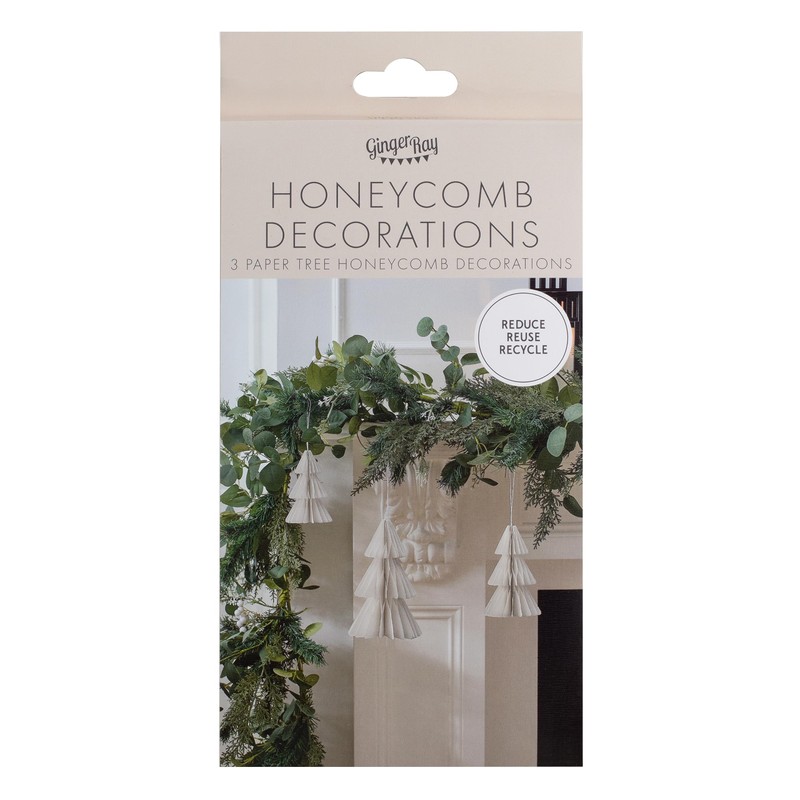 Ginger Ray White Honeycomb Tree Paper Hanging Christmas Decorations - Pack of 3