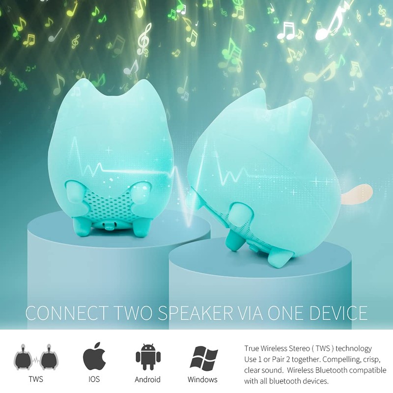 gingo 2Pack Portable Bluetooth Speaker, Mini Wireless Speakers with Clarity Stereo, TWS, Built-in Mic, Super Bass, Powerful Rich Room-Filling Sound, Cute Pet Mini Bluetooth Speaker (Green)