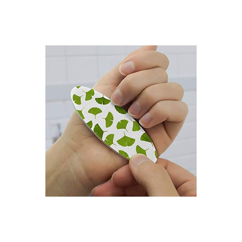 Ginko Biloba Leaves Pattern Double-Sided Oval Nail File Emery Board Set 4 Pack