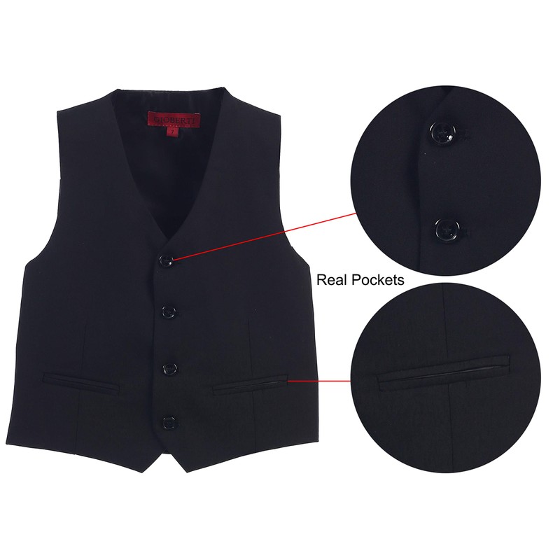 Gioberti Boy's 4 Button Formal Suit Vest, Black, Size 5