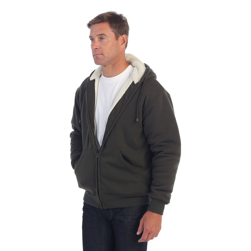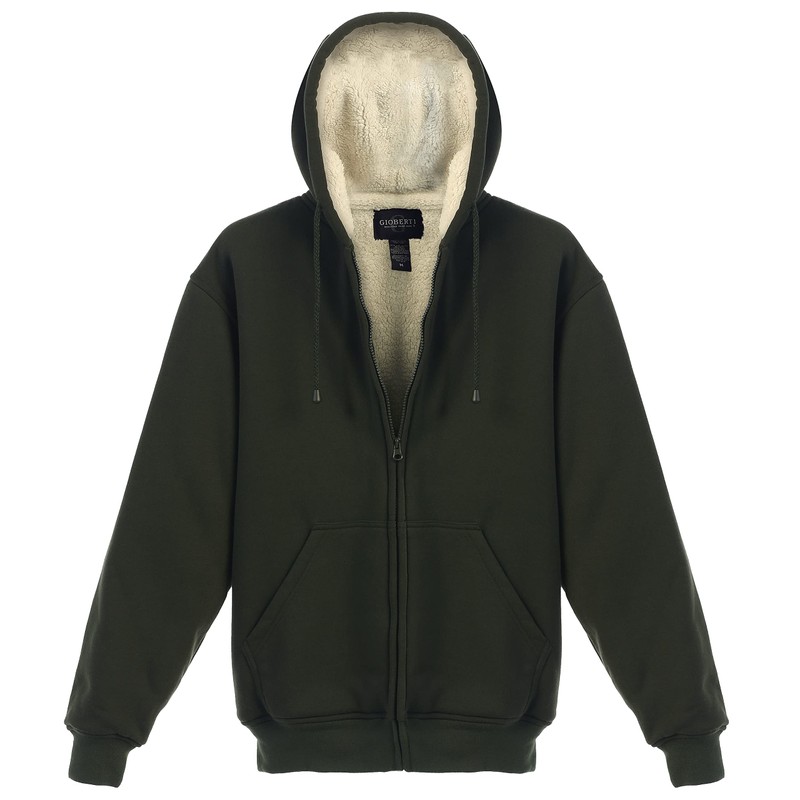 Gioberti Men's Heavyweight Sherpa Lined Fleece Hoodie Jacket, Olive, Medium
