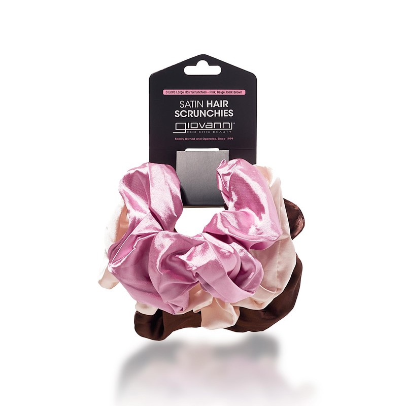 GIOVANNI Satin Extra Large Hair Scrunchies - Gentle on your Hair, Fashionable, Satin, Hair Styling Tool - Blush, Beige, Dark Brown (Pack of 3)