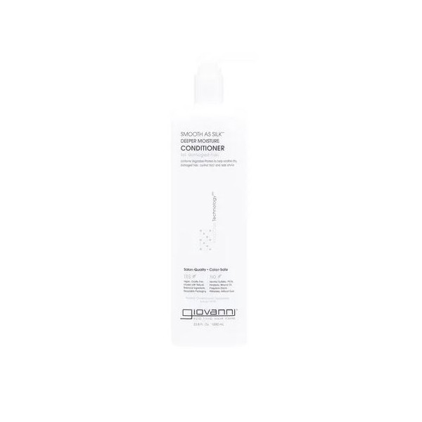 Silk — it has the most incredible feel, the most incredible texture. It makes you feel sexy. Desirable. SMOOTH AS SILK™ Deeper Moisture Conditioner from Giovanni makes your hair feel so smooth, so silky, so amazingly detangled. This color-safe deep conditioner works only where needed to create a silky-smooth palette. Renewed and ready for your own unique kind of style. SMOOTH AS SILK™ provides smooth moves indeed.