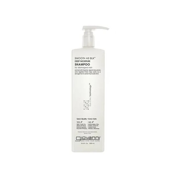 Soft and smooth, sexy and sultry. SMOOTH AS SILK™ Deep Moisture Shampoo from Giovanni® has a pearlized formula that glistens in your hand and transforms your hair into a silky palette. This new and improved Eco Chic® formula with Apple and Aloe extracts provides antioxidant protection and enhanced moisturizers for even silkier hair. Lather and glow with the flow that begins your style. SMOOTH AS SILK™ Deep Moisture Shampoo wears beautifully on you.