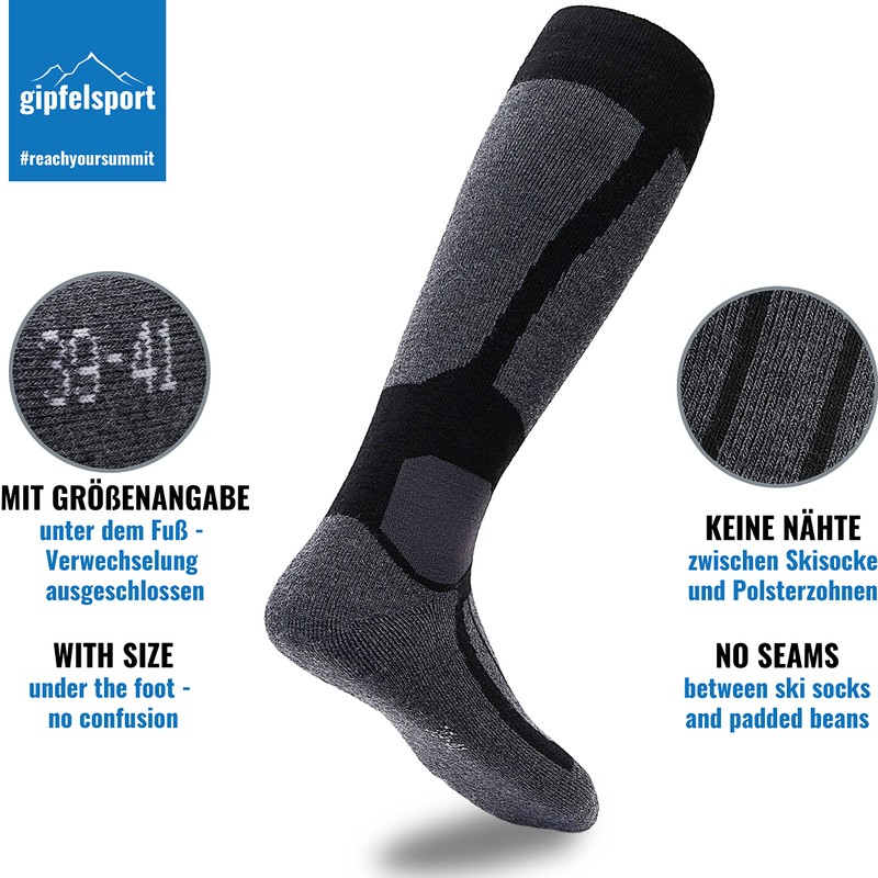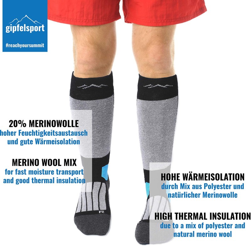 Gipfelsport Ski Socks, Warm Winter Socks Made of Merino Wool, Thermal Socks for Men and Women, Thermal Function Socks