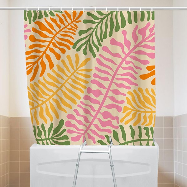 Gipsighila Split Shower Curtain for Transfer Bench Boho Split Shower Curtain Minimalist Mid Century Shower Curtain Set Waterproof Polyester Fabric Bathroom Decor 71 x 71 Inches
