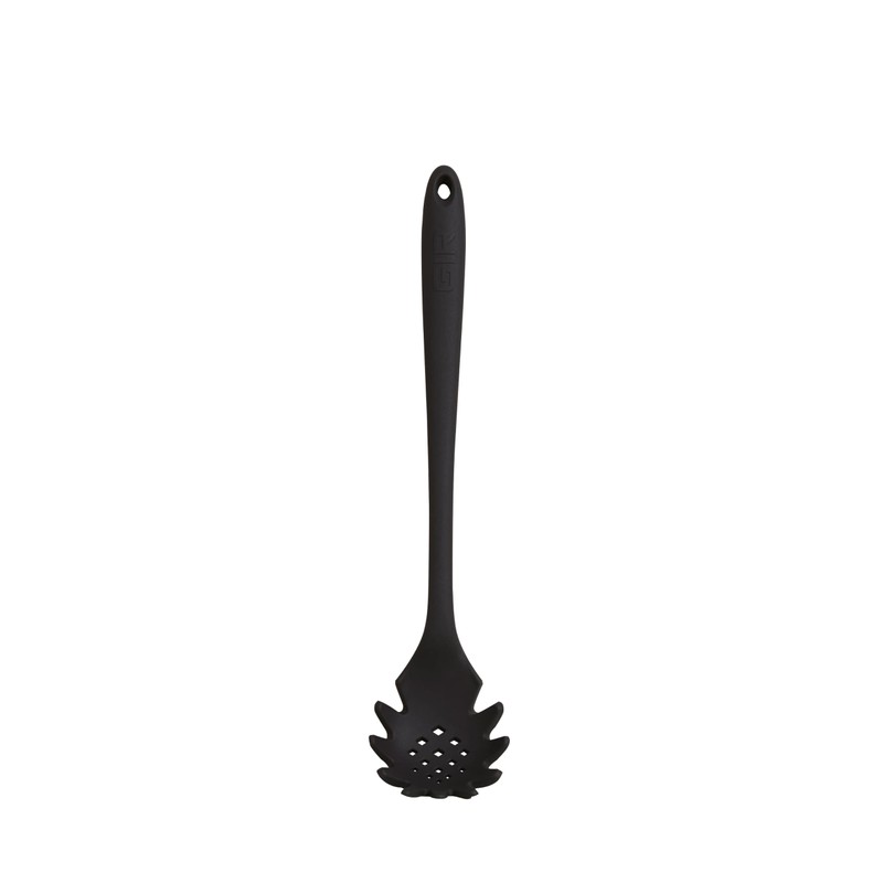 GIR: Get It Right Silicone Spoon, High Heat Resistant Kitchen Tool - Non toxic cooking utensils for Nonstick Cookware, Cooking, Strainer, and Serving, Spaghetti - 13 IN, Black