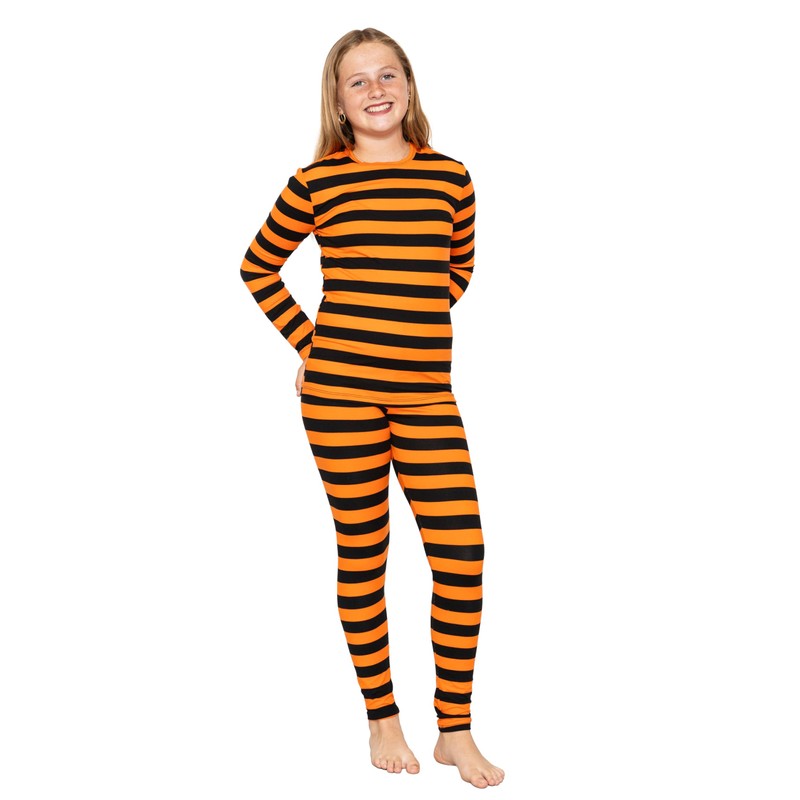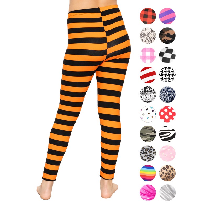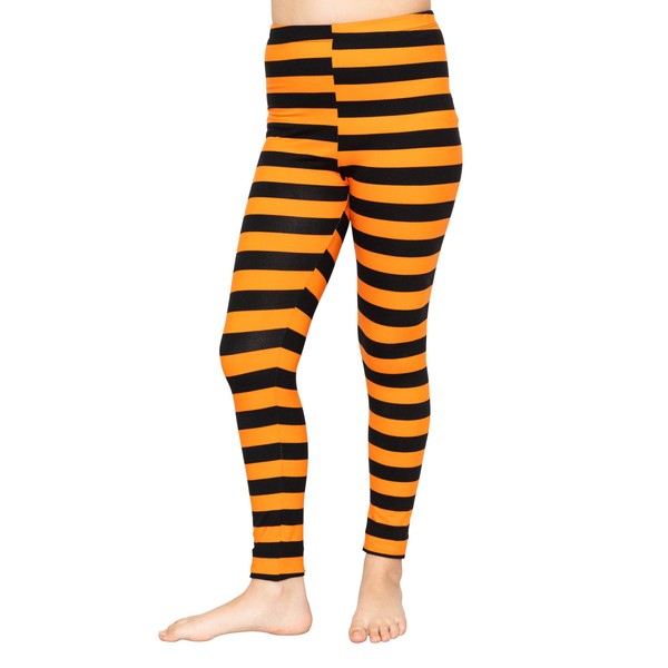 Gir'ls Oh So Soft Leggings Black and Orange Stripes Medium
